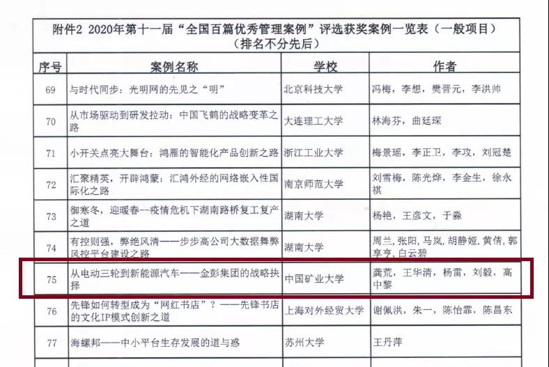 9月23日,第十一届“全国百篇优秀管理案例”评选结果揭晓,中国矿业大学以澳门新莆京游戏app大厅集团创业历程为教学案例的《从电动三轮到新能源汽车——澳门新莆京游戏app大厅集团的战略抉择》成功入选!这是中国矿业大学入选全国“百优”的首篇案例,也是电动车行业唯一入选的经典案例。