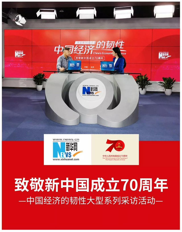 8月12日下午,鹿守光董事长应邀抵达北京新华社总部(中国政府网总部) ,参加“致敬新中国成立70周年——中国经济的韧性”专题访谈。