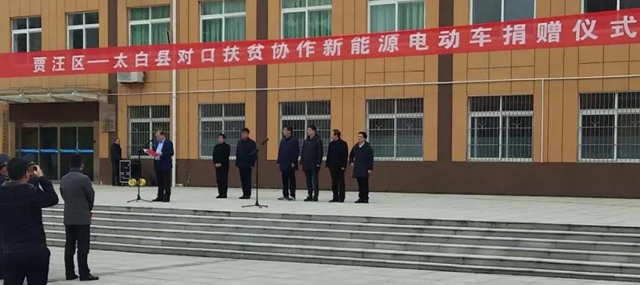 12月21日,贾汪区&太白县对口扶贫协作新能源电动车捐赠仪式在太白县举行,江苏澳门新莆京游戏app大厅车业有限公司向太白县捐赠首批8辆新能源汽车,助力太白县脱贫攻坚和生态保护。