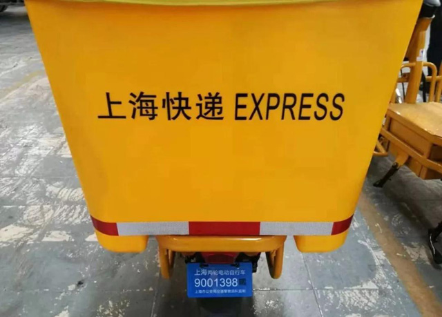 本次为上海设计的快递专用自行车采用全新的加强承载式车架结构;搭配专用载货箱体,空间大、密封防水、可伸缩调节、可拆卸,并搭载变频动力科技,可自动倒车,在窄小巷道也能轻松调头;同时配备120°广角1080P行车记录仪,加装北斗导航定位系统,可双向报警预防货物丢失、远程遥控,随时获取投揽进度。在安全方面,加强了驻车制动功能,保证车辆在斜坡停放时的可靠性和稳定性,从而消除溜车的隐患。